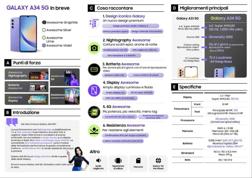 Mivel lesz részletes cikk mind a kettőről, így specifikációs fotók formájában mutatnám először a Galaxy A34 5G különbségeit az elődhöz képest, illetve a húzó USP-it.