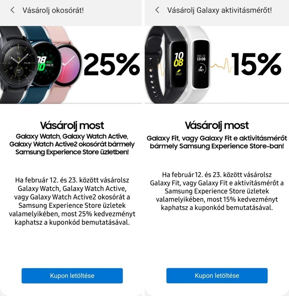A Samsung okosan formálja a promóciókat, ugyanis februárra semmilyen WÁÓ-faktoros leértékeléssel nem készült – már ami az okostelefonok szegmensét érintené. Inkább a kiegészítőkre helyezték a hangsúlyt, köztük az aktivitásmérőkre és az okosórákra, amelynek lejáratát meghosszabbították; aztán ott vannak az AKG fül- és fejhallgatók, amikre Glamour- és Joy napokkor szokott lenni kuponőrület.