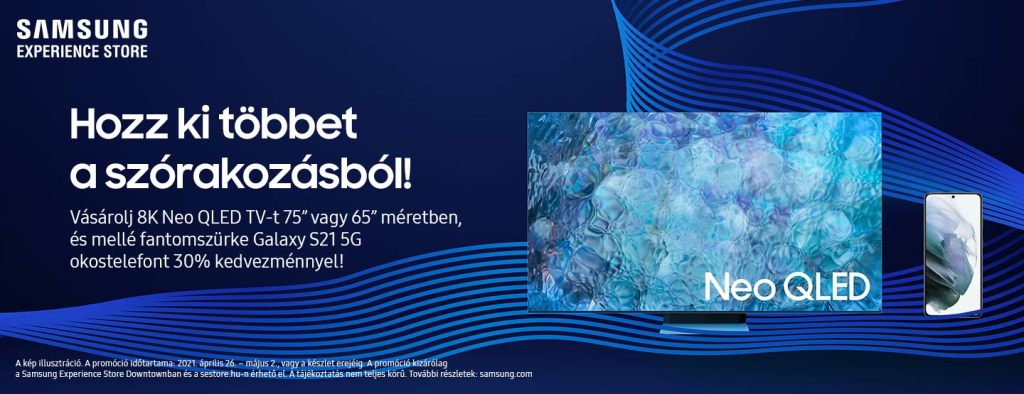 Mondanom se kelljen, de az idei tévékre esik kezdésképpen a fókusz. A 8K Neo QLED tévékre, amelyeknél lesz egy olyan ajánlat, hogyha vásároltok egyet, akkor a Galaxy S21 5G okostelefont (SM-G991BZADEUE) mellé 30%-kal olcsóbban tudjátok bundle formában megvásárolni.