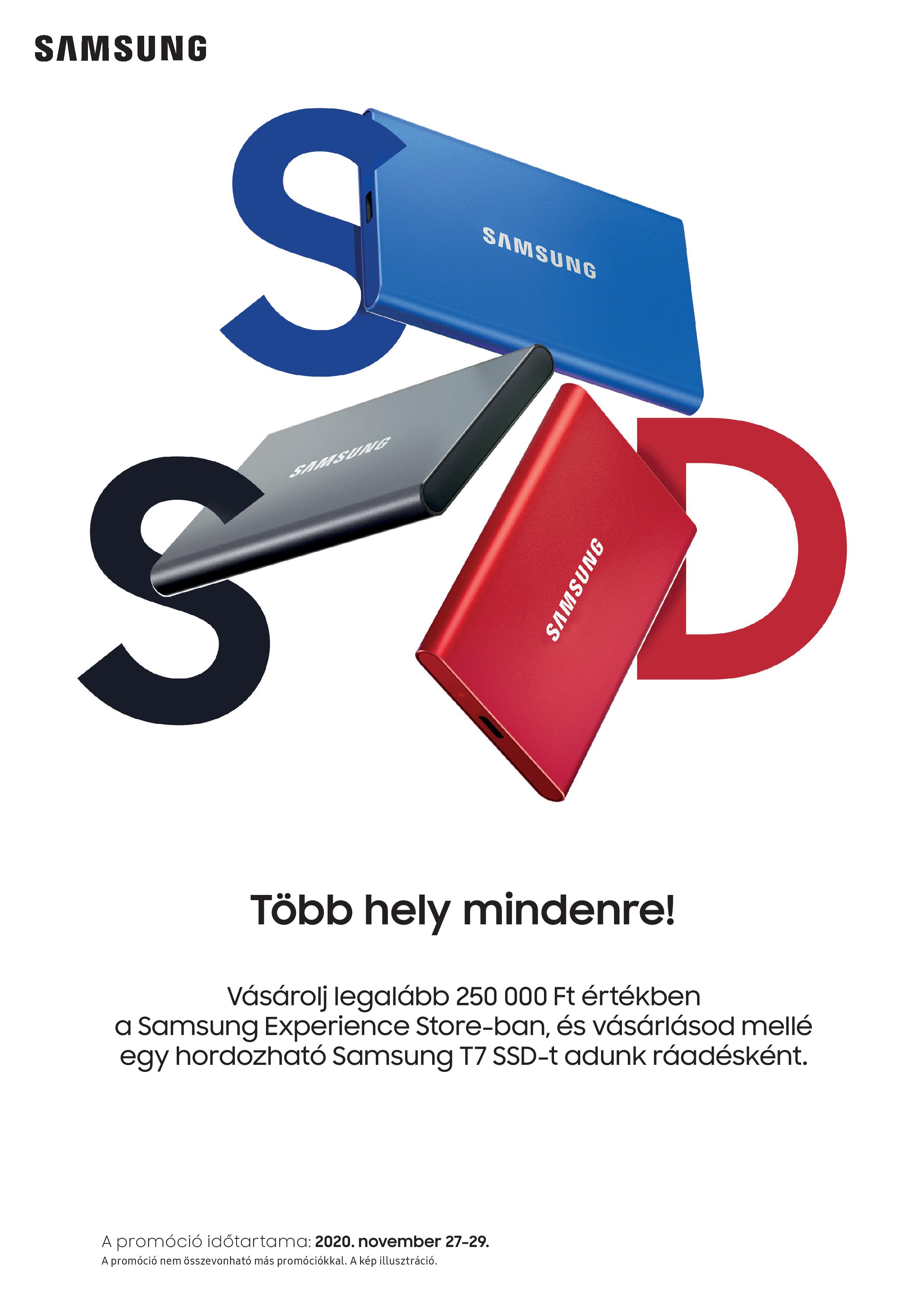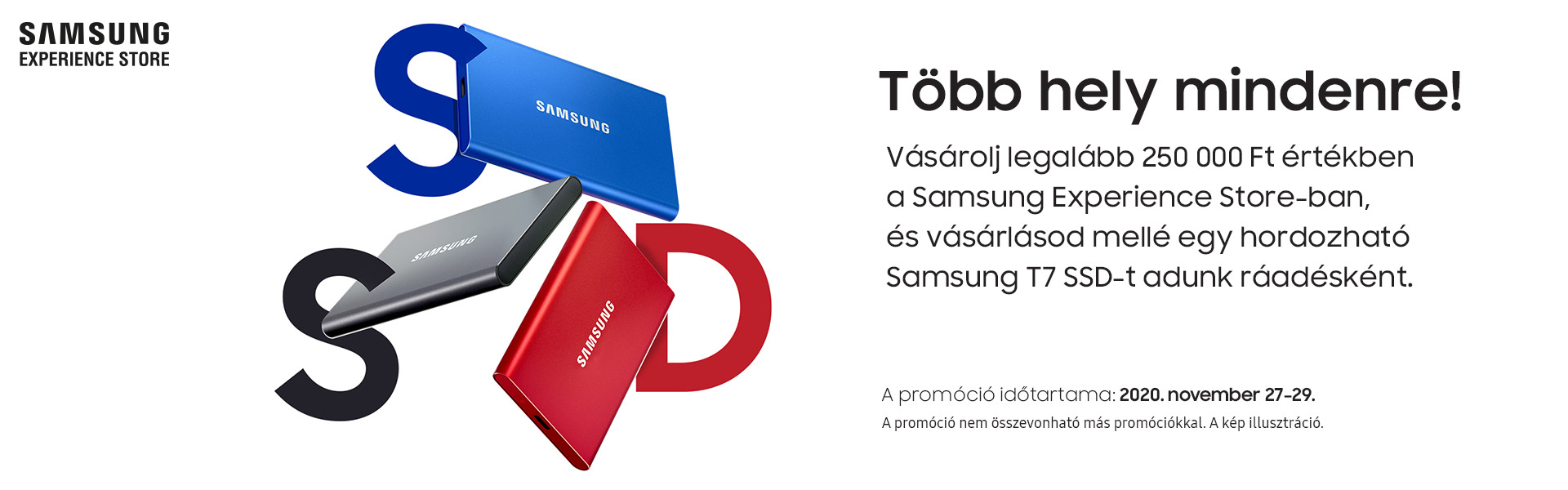 Pénteken a Fekete Péntek-őrülettel párhuzamosan egy harmadik is elrajtolt. Itt jegyezném meg, hogy a promóciók nem összevonhatók, tehát, amikor az egyik ajánlattal élni szeretnétek, akkor a hozzákapcsolódó feltételeket kell szem előtt tartani. A háromnapos „Több hely mindenre!” elképzelés azt a célt szolgálja, hogy felsőkategóriás termék vásárlásával hozzájuss egy hordozható SSD-hez, ami mindennel kompatibilis, így remek adathordozó.