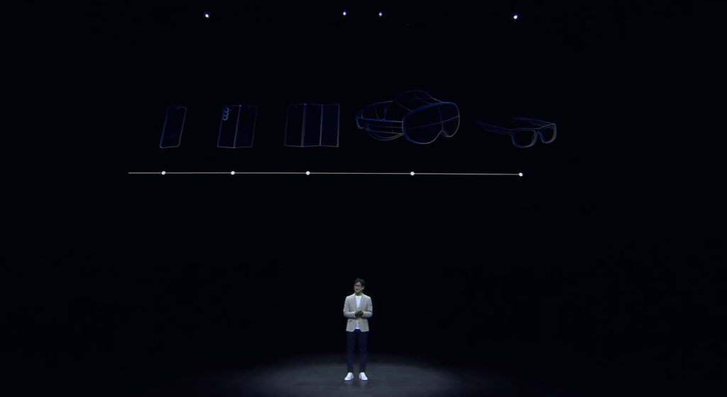 Jay Kim, a Samsung Customer Experience Office vezetőjének beszéde alatt volt látható a gyártó innovációs roadmapje, ahol a szimpla foldable-öket követte a tri-fold foldable szegmens. A fotón az S-stílusú elképzelés látható, de úgy vélem, erre a részletre szimplán csak nem figyeltek oda, mert ugye a Samsungnak a Flex G-ként nyilvántartott megoldása az, amivel még ebben az esztendőben lehet számolni, valamikor az év utolsó felében.