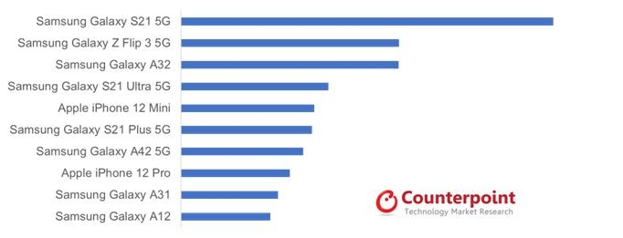 Az ország legnépszerűbb terméke a Galaxy S21 5G lett, melyre számtalan promóciót írtak ki. Vélhetően ez hozta meg a sikerét. A második helyre a remek formavilággal és megerősített strapasággal bíró Galaxy Z Flip3 5G került, míg a dobogó legalsófokán a középkategória egyik közkedvelte futott be, a Galaxy A33. További érdekesség, hogy a Galaxy S21 Ultra 5G se került ki a TOP5-ből. A versenytársak egyike az iPhone 12 Mini-vel fért fel a legjobb ötök listájára – hiszen ilyen méretben a Samsung nem éppen forgalmaz terméket.
