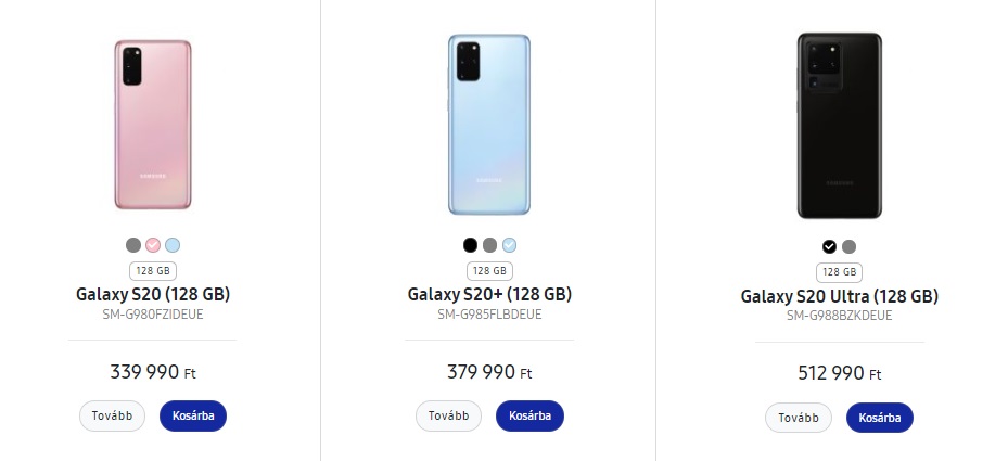 A teljesség kedvéért feltűntettem a németországi régiónak a plusz termékeit is, amelyek Magyarországot elkerülték, gondolok itt: a Galaxy M-szériára, valamint a 2020-as belépőszintű Galaxy A széria modelljeire.