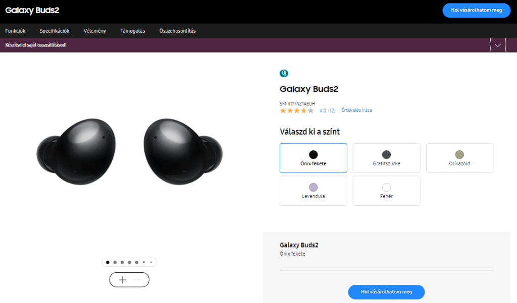 | Galaxy Buds2 Pro | SM-R510 | 99 990 Ft | 79 990 Ft |