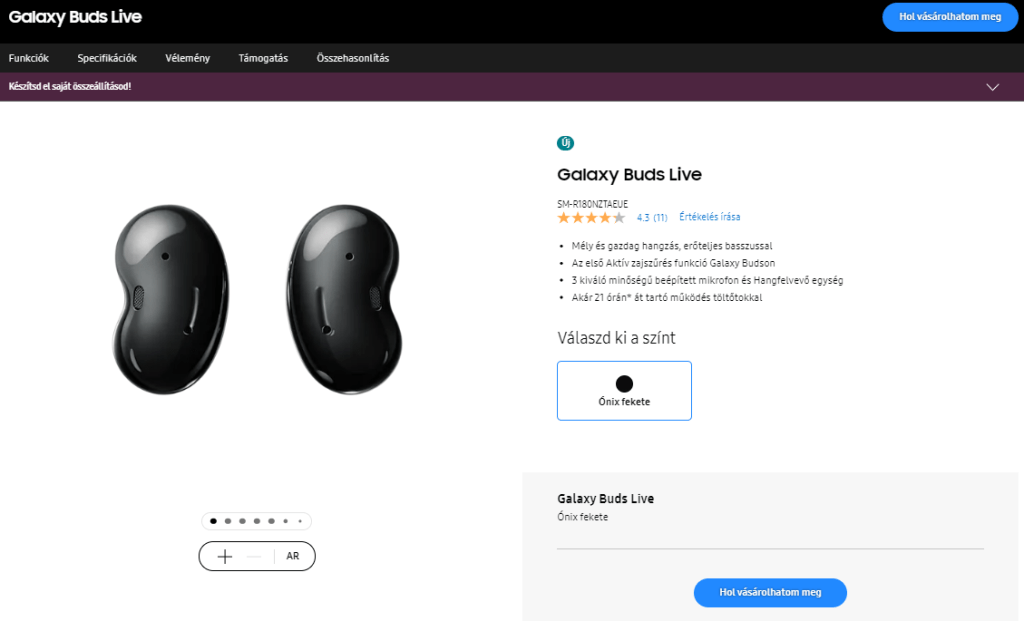 | Galaxy Buds Live | SM-R180 | 62 990 Ft | 31 990 Ft |