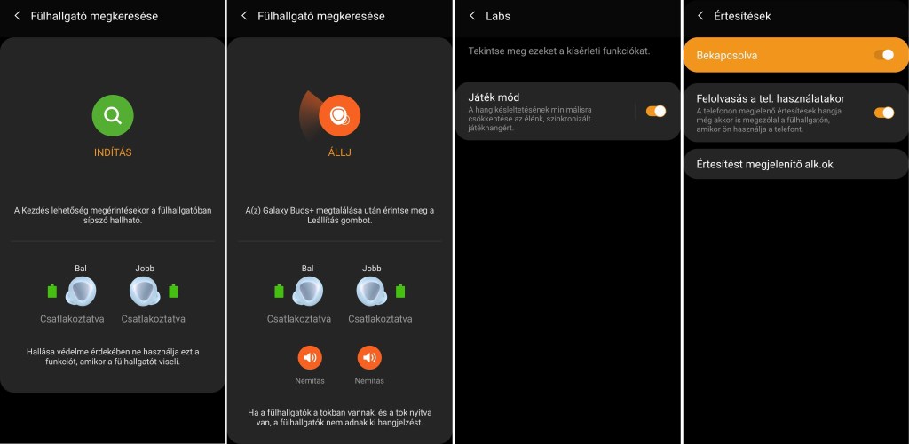 Fülhallgató megkeresése: mint azt a neve is elárulja, egy olyan funkció köszön vissza, mint az okosóráinál; azaz hangot kezd el kiadni a fülhallgató-egység, hogy jelezze, merre felejtette a felhasználója. Természetesen szükséges a Bluetooth kapcsolat. Itt nincs jelen a Wi-Fi, így eléggé korlátozottak a lehetőségek. Más kérdés, hogy mennyire hallatszódik a hangja egy hangosabb helységben?! Ezt a legutóbbi frissítéssel az előző generáció is tudja!