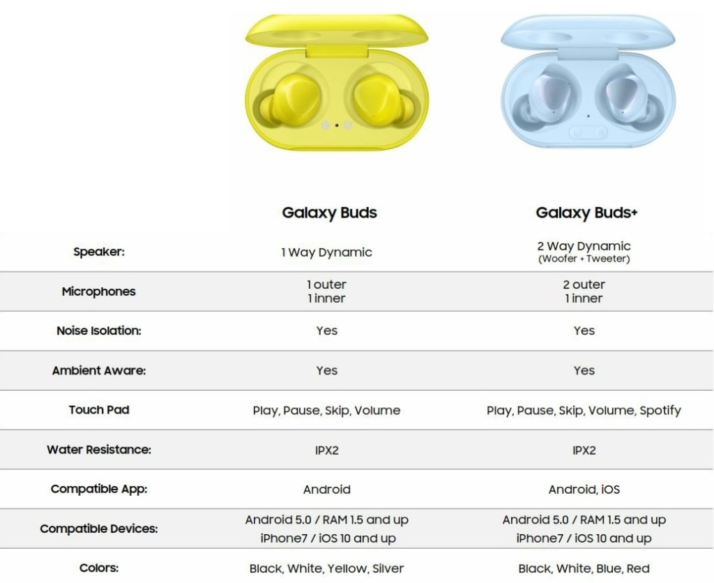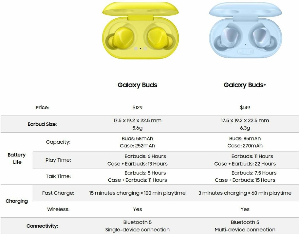 Szinte már minden információja a netre került a következő héten (jövő kedden!) bemutatásra kerül Galaxy Buds+-nak. A Samsung második generáció helyett inkább egy másfelediket szállít, ami egyfajta ráncfelvarrása lesz az amúgy is remekül működő előzőnek. (Azt azért leszögezném, hogy kellett jó pár szoftverfrissítés a cél eléréséhez.) A lentebb található táblázatot Evan Blass tweetelte.