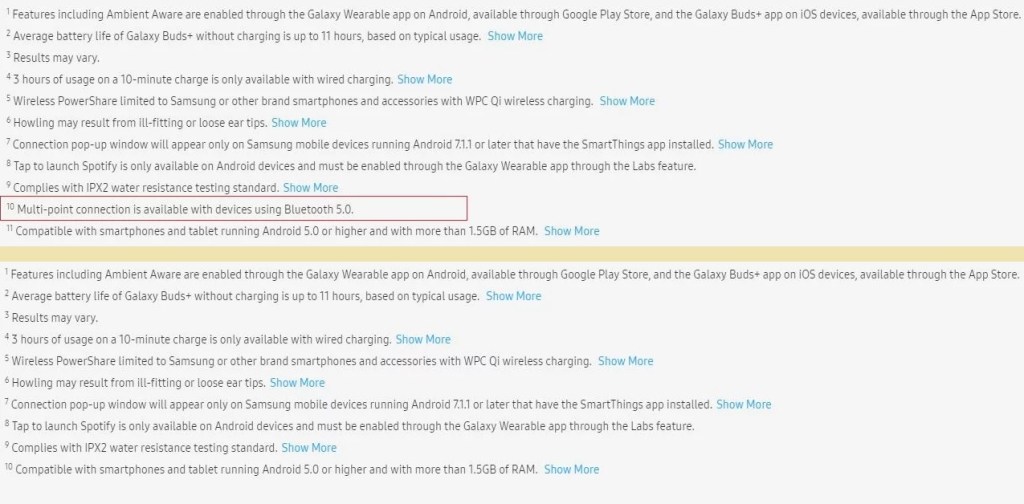A SamMobile bukkant rá Reddit-en egy felhasználó által feltöltött fotóra, amit a Samsung oldaláról lőtt. A kép különlegessége, hogy a felső felén a kezdetben kiadott leírás olvasható, ahol a 10. pontjánál felfedezhető a többpontos csatlakoztatási lehetőség; míg mostanra ez a bejegyzés rész eltűnt a felsorolásból.