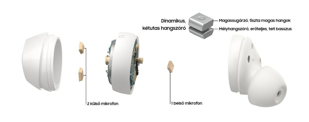 Aktív zajszűrővel még nem rendelkeznek a fülhallgató-egységek, azon a tripla mikrofonnak köszönhetően szoftveresen próbálkoznak meg a zajszűréssel, vagy inkább zajcsökkentéssel. A külső részén kettő, a belsőn pedig egy kap helyet. Tovább gondolták a hangszórók felépítését, melynek köszönhetően a magas és a mély hangok két különböző helyről szólnak, ezáltal megteremtve a tisztább, teltebb, dinamikusabb hangzást.