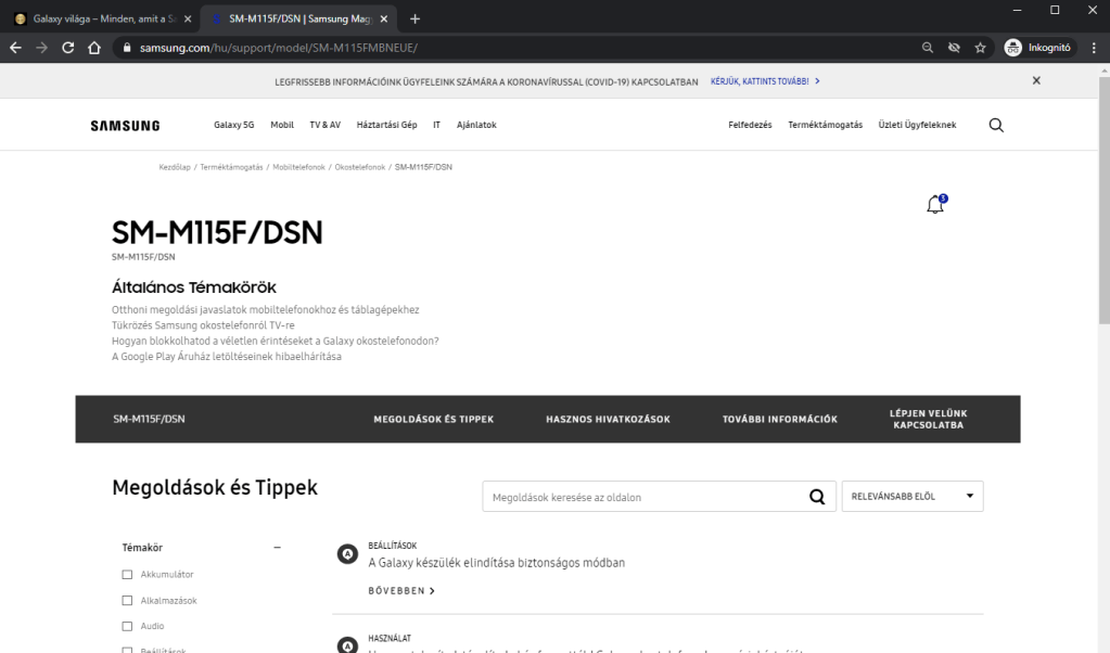 Amint többet tudunk, megírjuk, addig mutatnék egy képernyőfotót az SM-M115FMBNEUE típusszámú termék aloldaláról.
