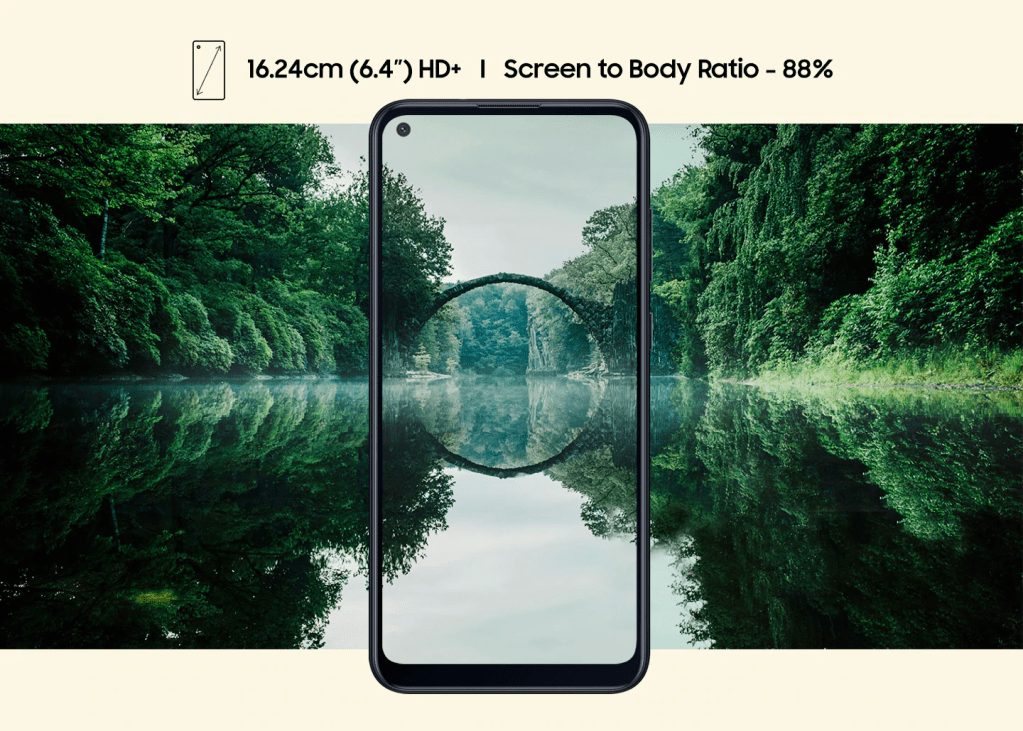 Balra igazított kamerakivágást kapott a Galaxy M11. Fotó: Samsung AE.