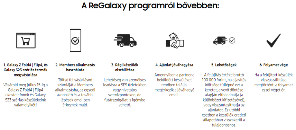 Az egyik fontos változás, hogy immáron nem csak a Galaxy S23 termékek vásárlásakor lehet igénybe venni, hanem bekerült a választékba a Galaxy Z Fold4 5G és a Galaxy Z Flip4 5G készülékduó. Ergo, ha az új generációs összehajtható modellek közül választanátok, és rendelkeztek egy a promócióban résztvevő okostelefonnal, akkor ugyanúgy jogosultak lesztek a bruttó 100 ezer forintig történő szervízen keresztüli díjmentes termékfelújításra.