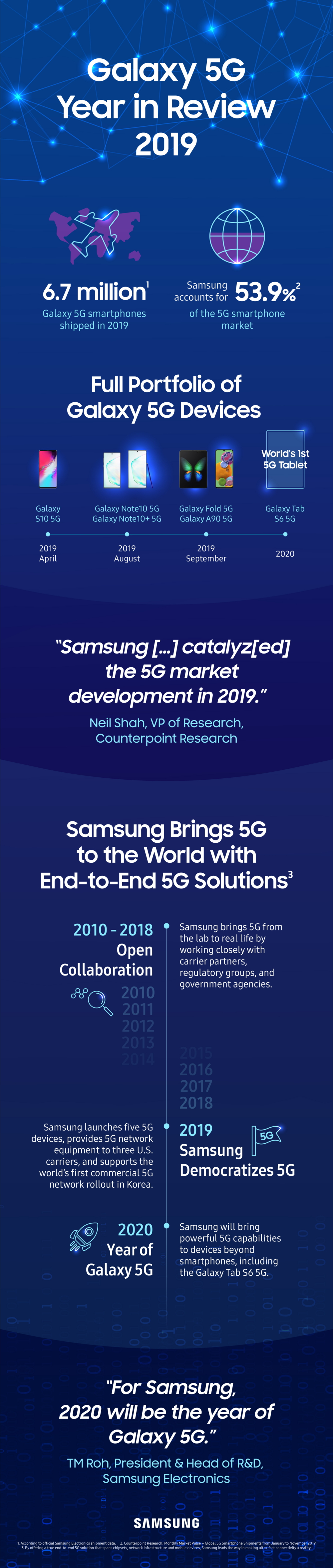 2019 tavaszán mutatkozott be az első 5G-s készülékük, a Galaxy S10 5G, ami a magyarországi piacot elkerülte. A sort folytatta ősszel a Galaxy Note10-család, melynek mind a két tagját ellátták az újdonsült technológiával, de persze hagytak választási lehetőséget azoknak, akiknek a kiforrottabb 4G is elegendő volt. A csúcskategória mellett a megfizethetőbb árazású középkategóriát se akarták kihagyni a kínálatukból, hiszen még mindig innen van a legjelentősebb vásárló közönsége. A Galaxy A90 5G a tavalyi év második felében debütált, és sokáig úgy volt, hogy Magyarországon is napvilágot lát, azonban a Galaxy Fold feltűnése miatt inkább veszni hagyták az elképzelést – aminek egyszerű oka lehetett: valószínűleg a Galaxy A80 hányattatott sorsára került volna magas árszabása miatt. A szegmens tovább tagokkal bővült 2020-ban, és a jelek szerint 2021 se hoz mást!