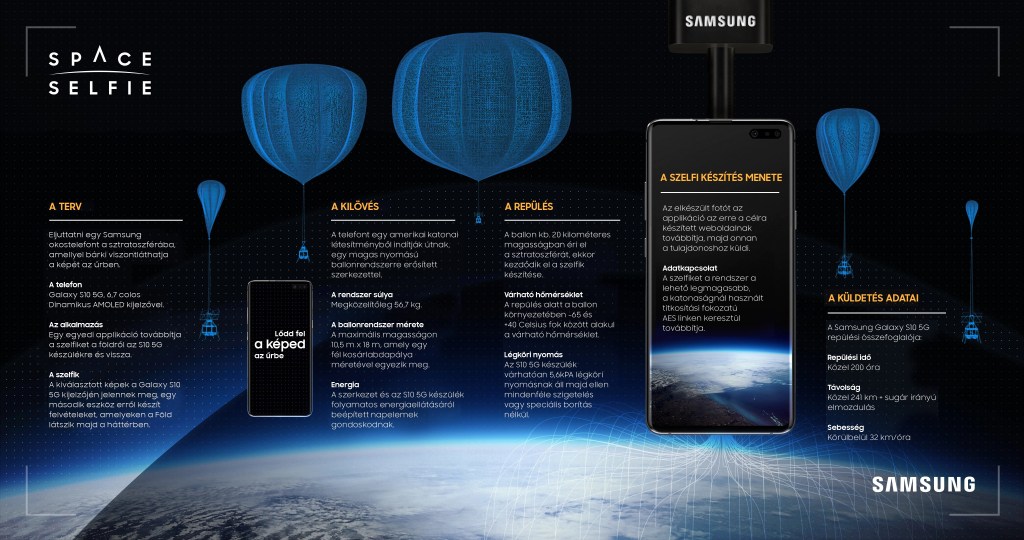 A Samsung és a Flightline Films közösen október 23-án útnak indította a dél-dakotai indítóállomásról azt a bizonyos fél kosárlabdapálya nagyságú ballonrendszerét, ami arra hivatott, hogy a sztratoszférába (cirka 20km-es magasságba) úgy nevezett űrszelfiket készítsen egy Galaxy S10 5G készülék felhasználásával azokból a fotókból, amelyeket a felhasználói az elmúlt időszakban beküldtek a vállalat felé. A projekt október 31-ig tartott volna, azonban hétvégén a vártnál előbb befejeződött.