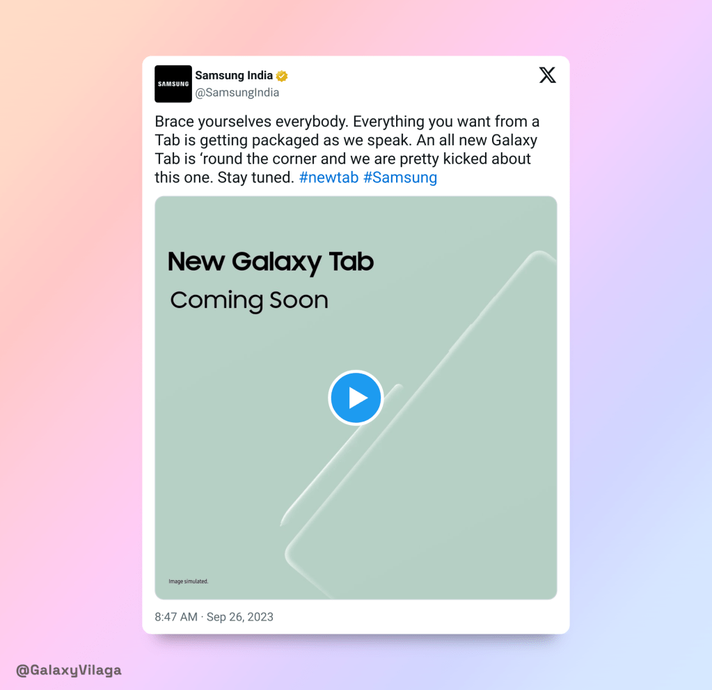Rajta egy S Pen képes modell, illetve egy S Pen látható, ami egyértelműsíti a Galaxy Tab S9 FE és a Galaxy Tab S9 FE+ érkezését.