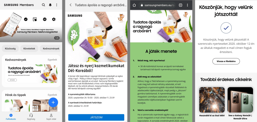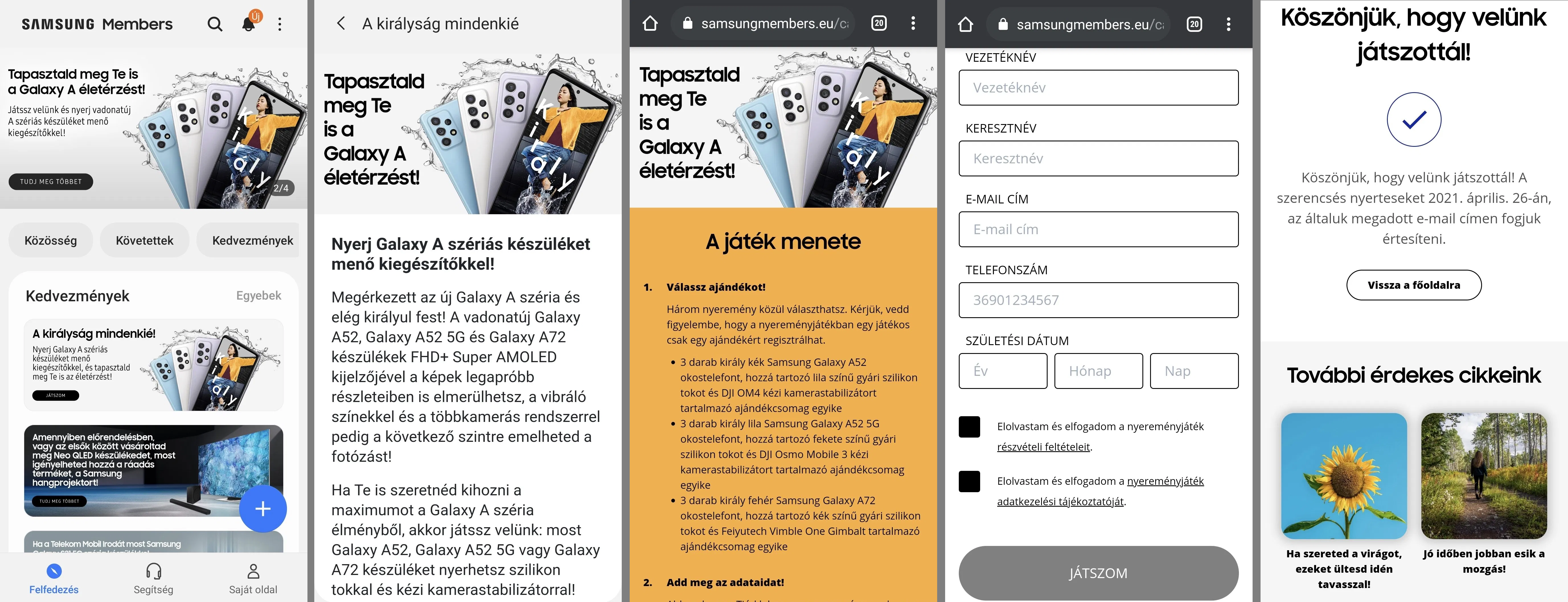 A szokásos módon, ha Samsung okostelefonnal vagy tablettel rendelkezel, akkor mindenképpen (töltsd le, majd) indítsd el a Samsung Members applikációt. Ha bejelentkeztél a Samsung fiókodba, akkor láthatod a Kedvezmények menüpontban a felhívó kreatívját, ami adja magát miként kell kitöltened, hogy bedobd a neved a virtuális sorsológömbbe. [2] oldalon csekkolható teljes egészében a leírás.