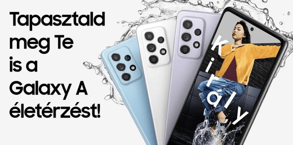 - 1 db király kék színű Samsung Galaxy A52 készülék (SM-A525FZBGEUE),