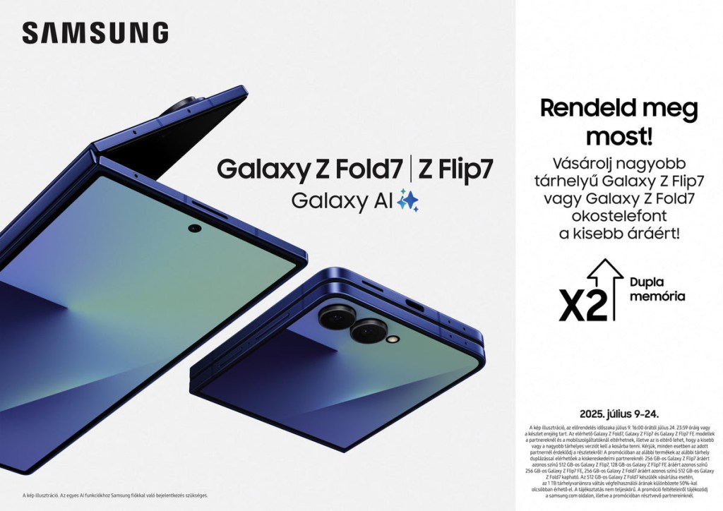 Az előrendelési időszak: 2025. július 9. 16 óra és 2025. július 24. éjfél között zajlik, valamint a készlet erejéig. Utóbbi azért nem jellemző a foldable termékeknél, legfeljebb adott színek esetében, viszont most a Samsung.com exkluzív szín nem tekinthető olyan húzóvolumenűnek, mint anno a Crafted Black. Mind a Galaxy Z Fold7-nél, mind a Galaxy Z Flip7-nél a hero color a Ködös kék lett, azaz a dél-koreai tech óriás bevállalta, hogy nem a fekete alternatíváját (JetBlack) teszi meg azzá, csakhogy népszerűsítse a színes mivoltát.