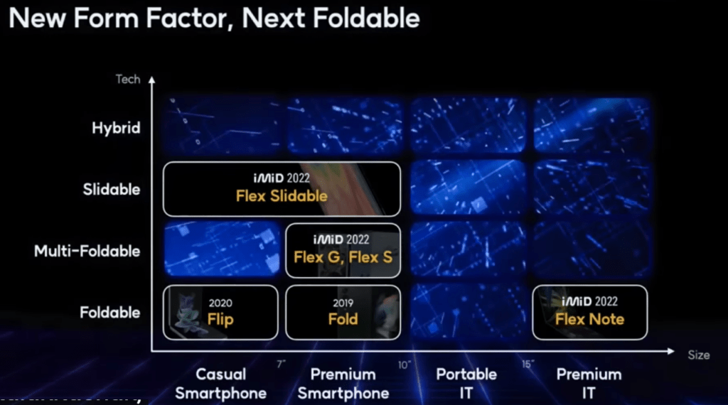 Az újítások sorából a Flex Hybrid (OLED) technológiát (és panelt) emelném ki, amellyel tovább bővítenék a foldable termékcsaládot, illetve azt új funkcióval látnák el. Lényegében a hibrid szó jelen esetben a technológiák ötvözését takarja, méghozzá a hajlíthatóét és a csúsztathatóét.