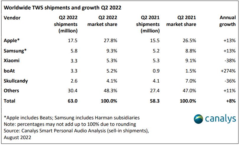 „Várhatóan a Samsung, a Xiaomi, az OPPO és mások saját TWS-kínálatukat használják majd az ökoszisztémájuk felhasználói élményének népszerűsítésére. Ezzel szeretnék javítani kilátásaikat a felső szegmensben; (..)”