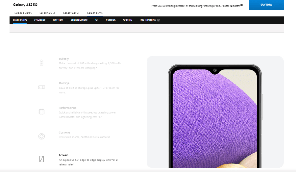 Ezzel szemben akadnak olyan régiók, ahol szerencsésebbek a vásárlók. Az egyik ilyen piac, az USA-ban lévő, ahol a 90Hz-es adaptív módot támogató képernyőpanellal debütált a Galaxy A32 5G, s ezáltal nincs semmiféle különbség a Galaxy A32 4G-hez képest.